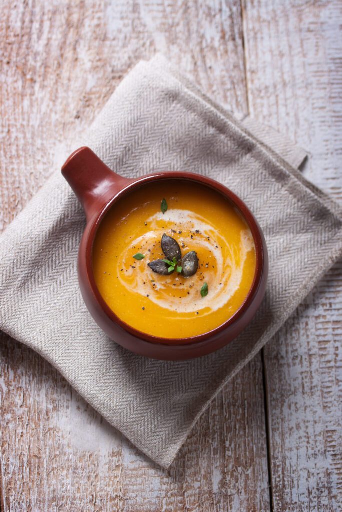 En automne, privilégier une alimentation chaude et simple aide le système digestif à se reposer : potages de légumes racines, infusions digestives (romarin, fenouil, menthe poivrée), bouillons clairs, compotes maison.